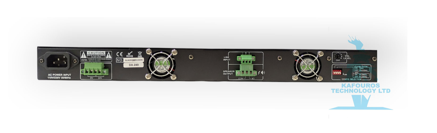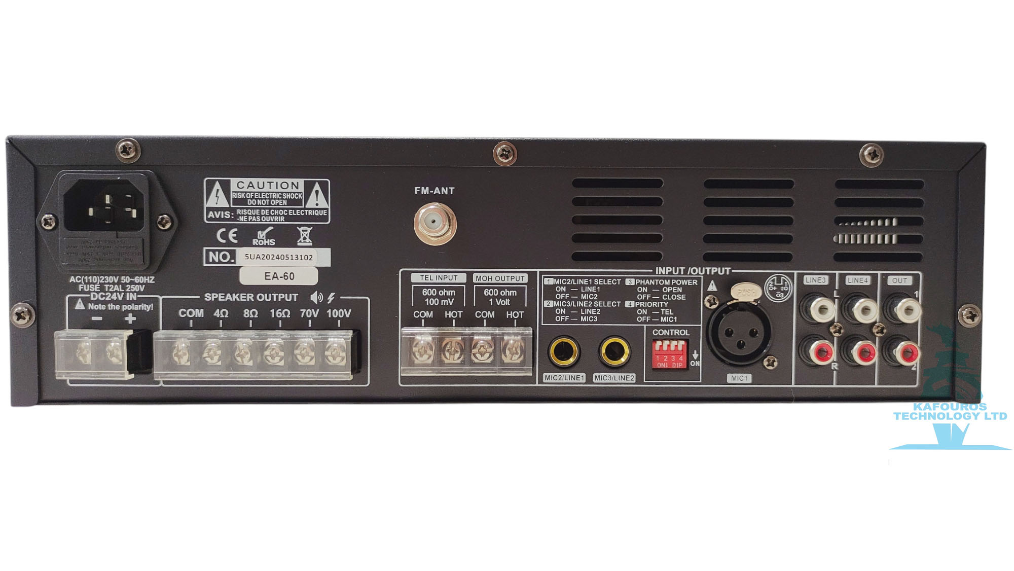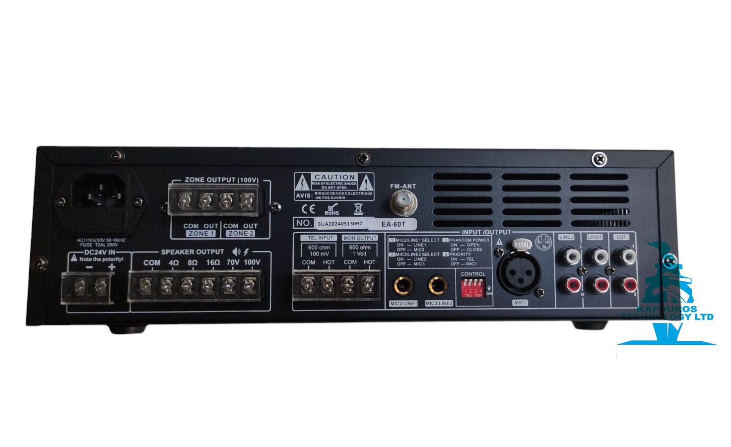 ‘Έξοδος Ηχείων: 4Ω, 8Ω, 16Ω & 70V, 100V
